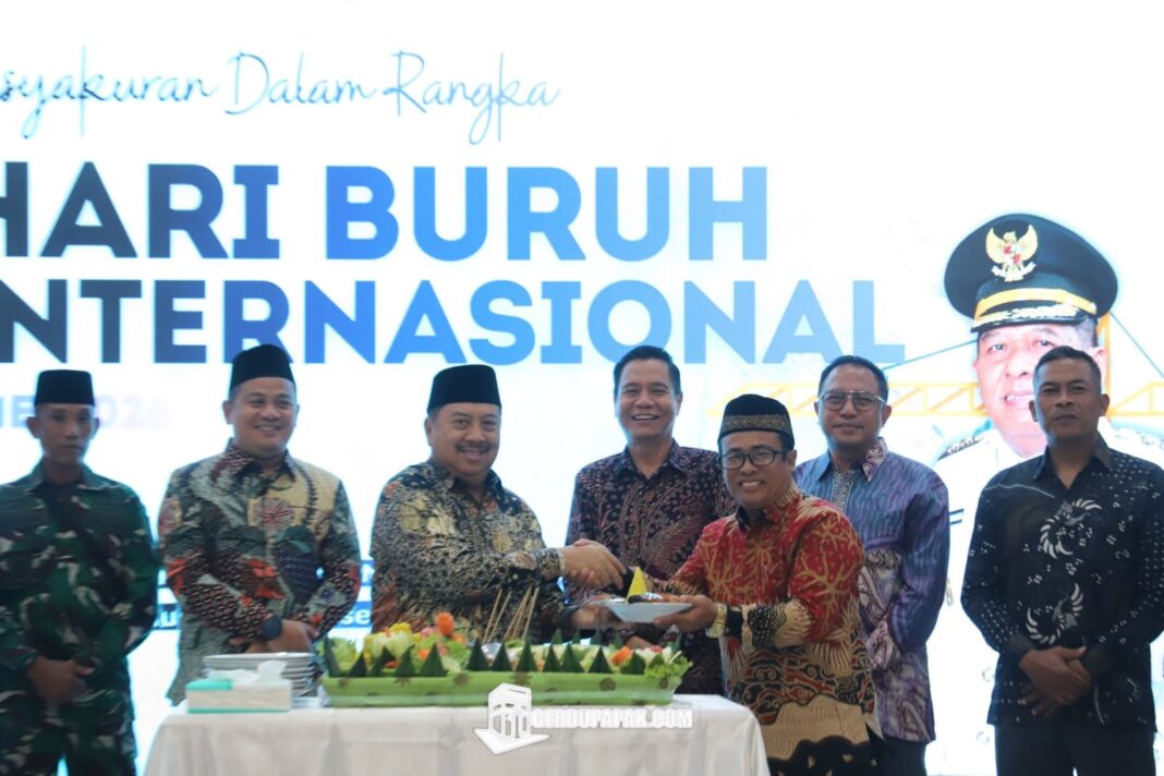 Jombang, Gerdupapak.com – Pemerintah Kabupaten Jombang melalui Dinas Tenaga Kerja gelar Tasyakuran Peringatan Hari Buruh Internasional (May Day) 2026, dibuka secara langsung oleh Bupati Jombang, Warsubi, didampingi Wakil Bupati Jombang Salmanudin Yazid. Dihadiri Ketua DPRD Jombang, Hadi Atmaji, Sekdakab Jombang, Agus Purnomo, Kapolres Jombang AKBP Ardi Kurniawan, Staf Ahli, Kepala OPD, Ketua TP PKK Jombang Yuliati Nugrahani Warsubi para Pimpinan Perusahaan, serta para Ketua Serikat Pekerja/Serikat Buruh se-Kabupaten Jombang.
